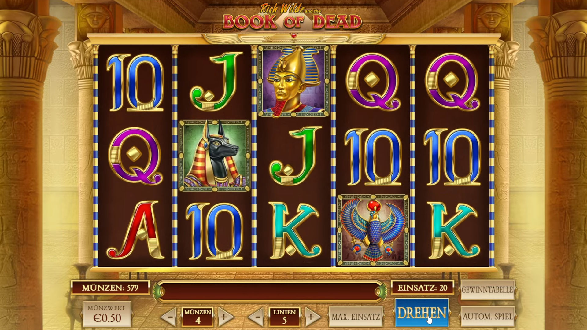 The game features ancient Egyptian themes and symbols, including hieroglyphics, gods, and treasures.